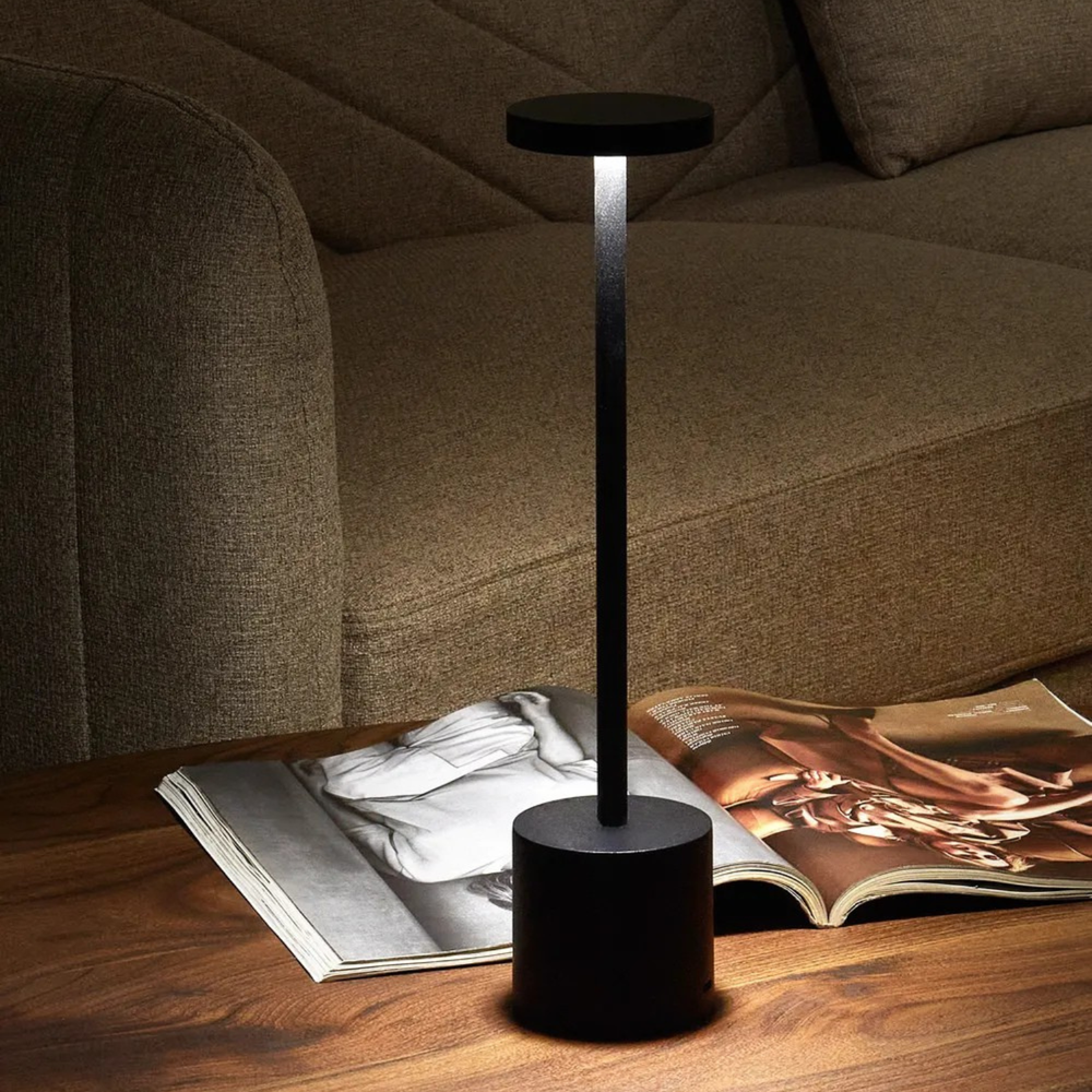 De Erling tafellamp die licht geeft zonder kabels. Geïnspireerd door Scandinavisch minimalisme, ontworpen voor jouw bewegingsvrijheid. De cilindervormige aluminium basis verbergt een krachtige 1800mAh batterij die 6 tot 10 uur meegaat. Het warme 3000K LED-licht schijnt door een ronde aluminium kap die de lichtbundel zacht verspreidt. Drie dimstanden, aanraakbediening, en een oxidatiebehandeling die de afwerking beschermt. Geen stopcontact nodig. Alleen jouw tafel en dit licht.